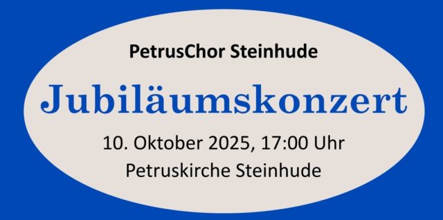 Herzliche Einladung zum Jubiläumskonzert des PetrusChores am Freitag, 10. Oktober 2025 um 17.00 Uhr in der Petruskirche 25 Jahre Gemeinschaft, Gesang und Glauben – in diesem Jahr feiert der Steinhuder Kirchenchor sein 25-jähriges Bestehen. Die Chormitglieder und ihre Chorleiter*innen laden Jubiläumskonzert | 25 Jahre PetrusChor Steinhude weiterlesen