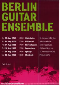 Herzliche Einladung zum Konzert des Berlin Guitar Ensembles am Samstag, 30. August 2025 um 18.30 Uhr in der Petruskirche.